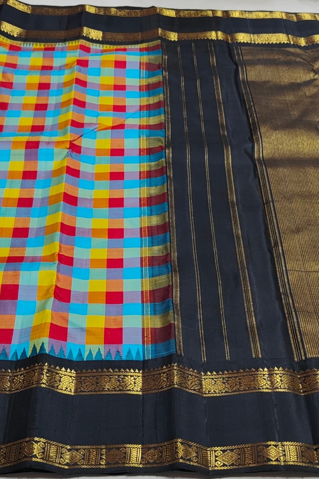 Multi-Colour Checked  Kanjivaram silk saree (ORKSS18)