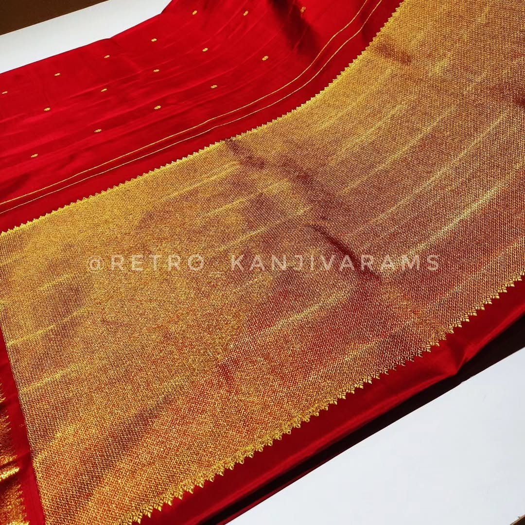 Red kanjivaram silk saree Handwoven