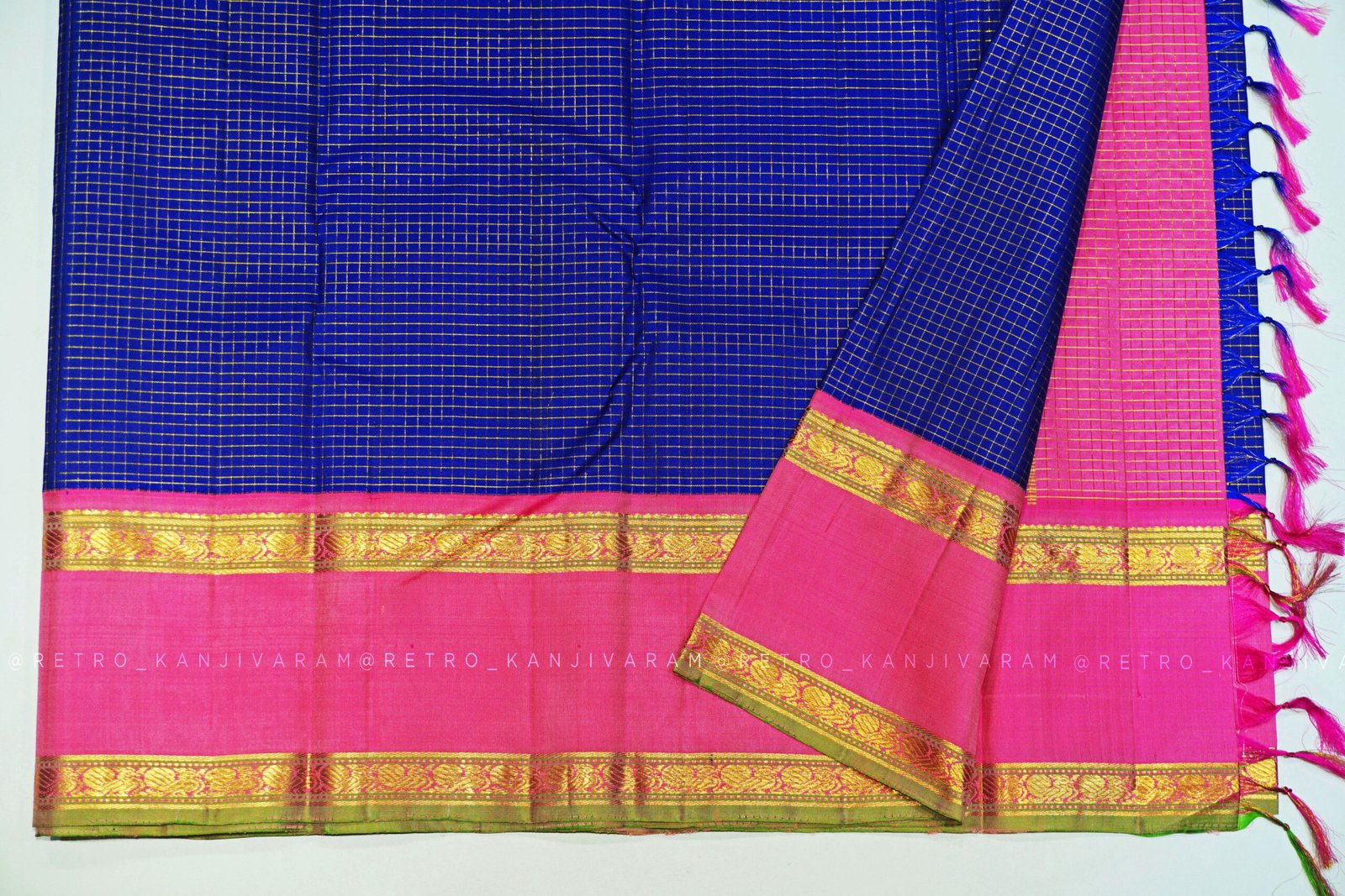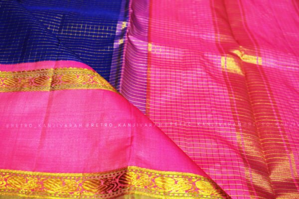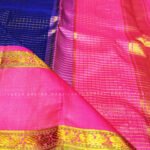 Royal Blue Kanjivaram Silk Saree With Baby Pink Border