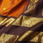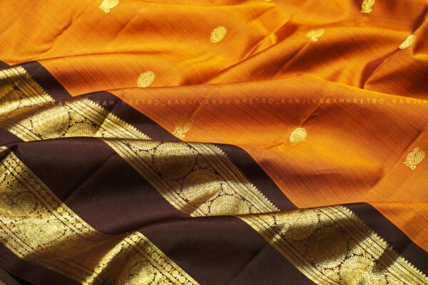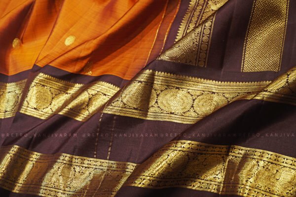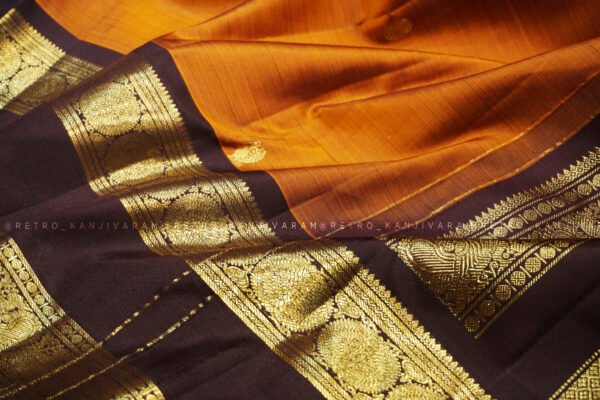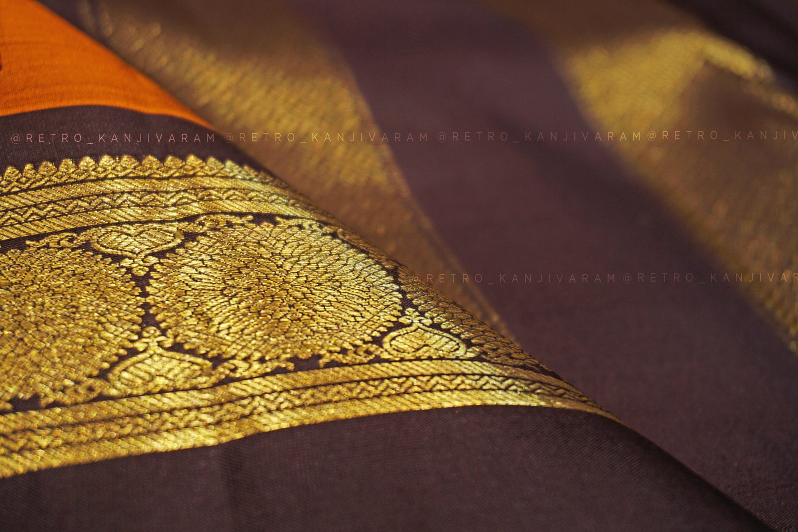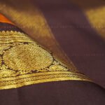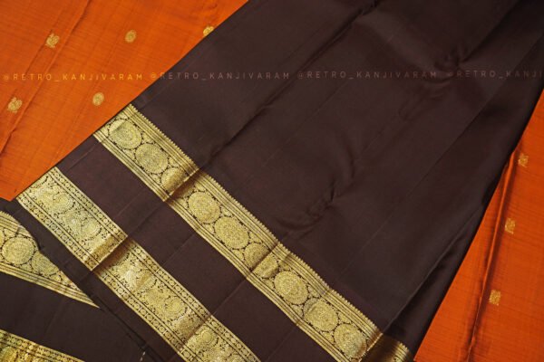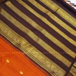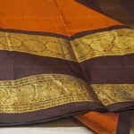 Rust Orange Kanjivaram Silk Saree With Coffee Brown