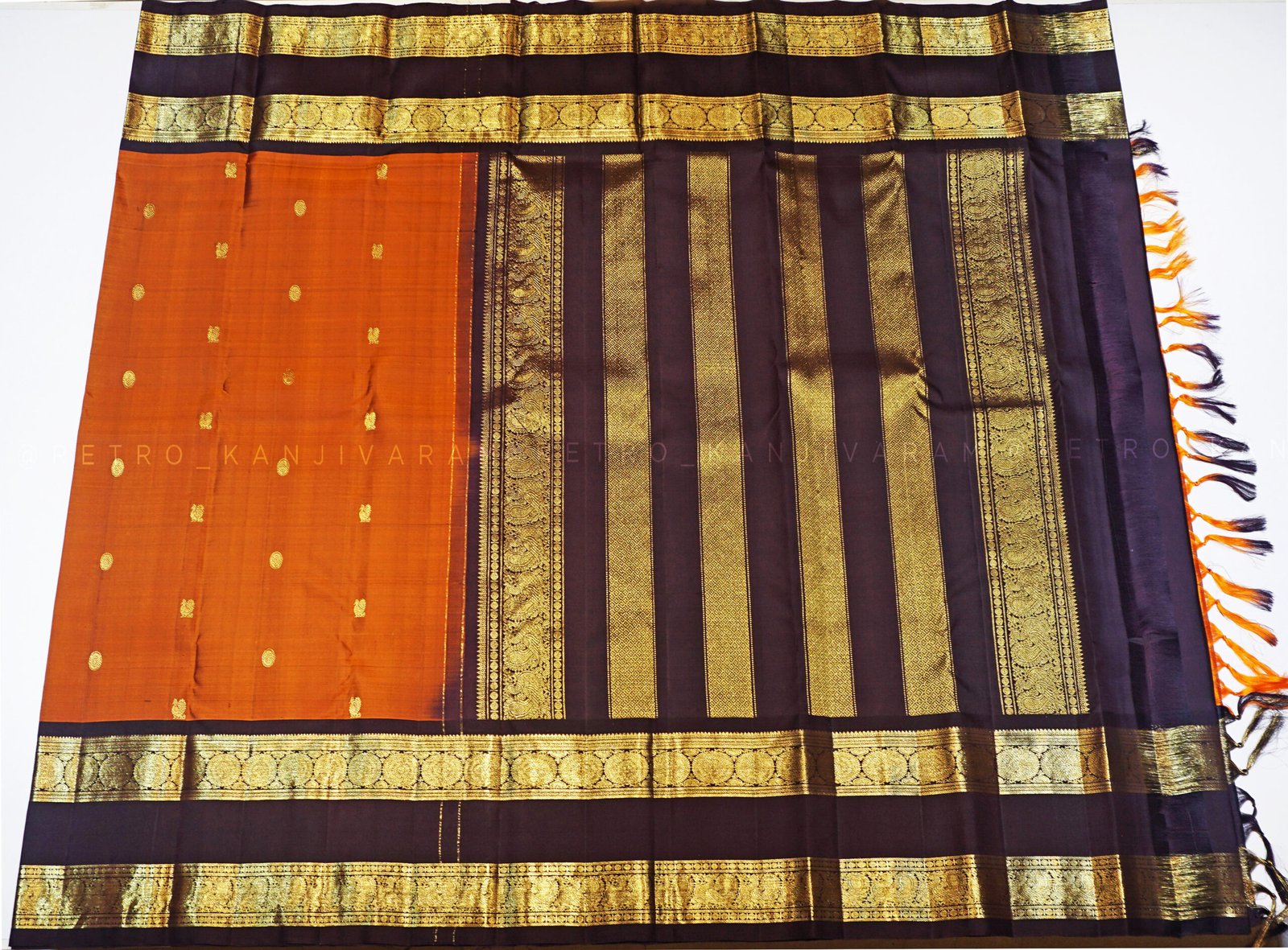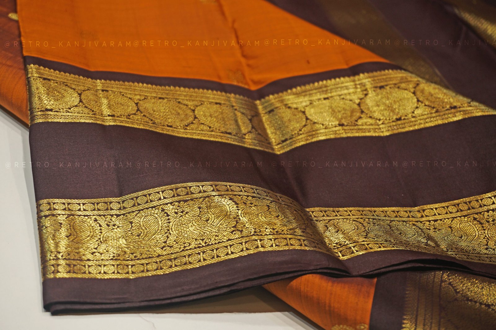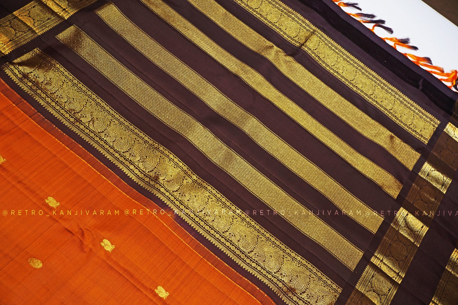Rust Orange Kanjivaram Silk Saree With Coffee Brown In Retta Petta Border (RKSS09)
