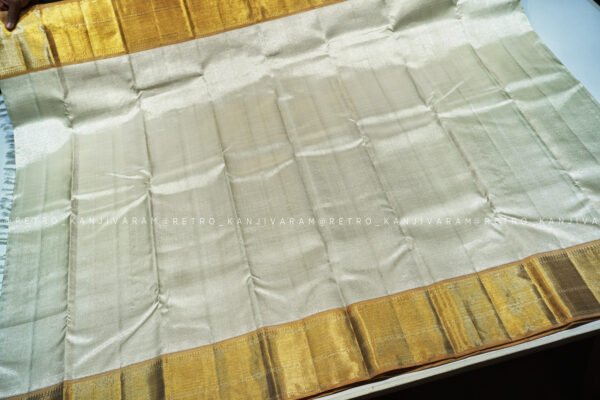 Silver Kanjivaram Silk Saree in Gold Border – A Luminous Legacy of Royal Elegance